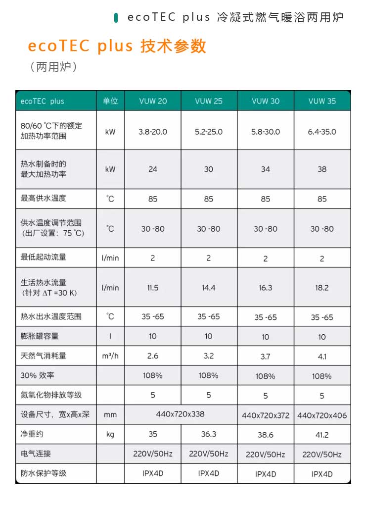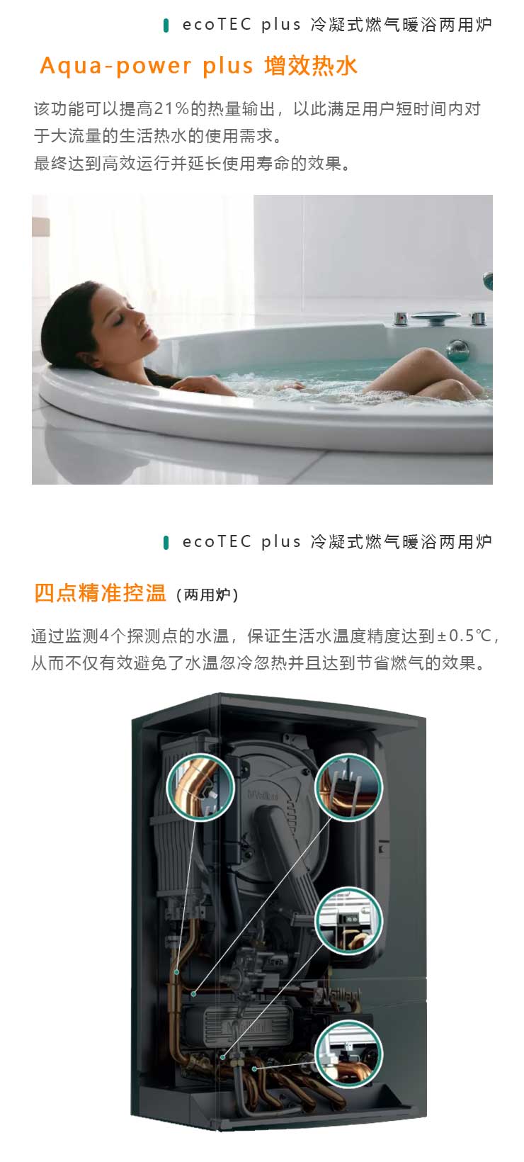 ● 采暖和生活熱水兩用,20、25、30和35 kW輸出功率 ● 潛熱回收技術(shù)熱效率達108%,較普通鍋爐省15-20%的運行費用 ● “四點溫控”技術(shù)保證熱水溫度精確在0.5度以內(nèi),且有防止干燒的功能 ● 保證快速提供生活熱水,出水溫感保證生活熱水溫度的穩(wěn)定性 ">
