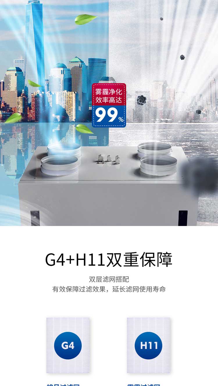 ● G4+H11雙層過濾網(wǎng)保障,凈化效率高達97%